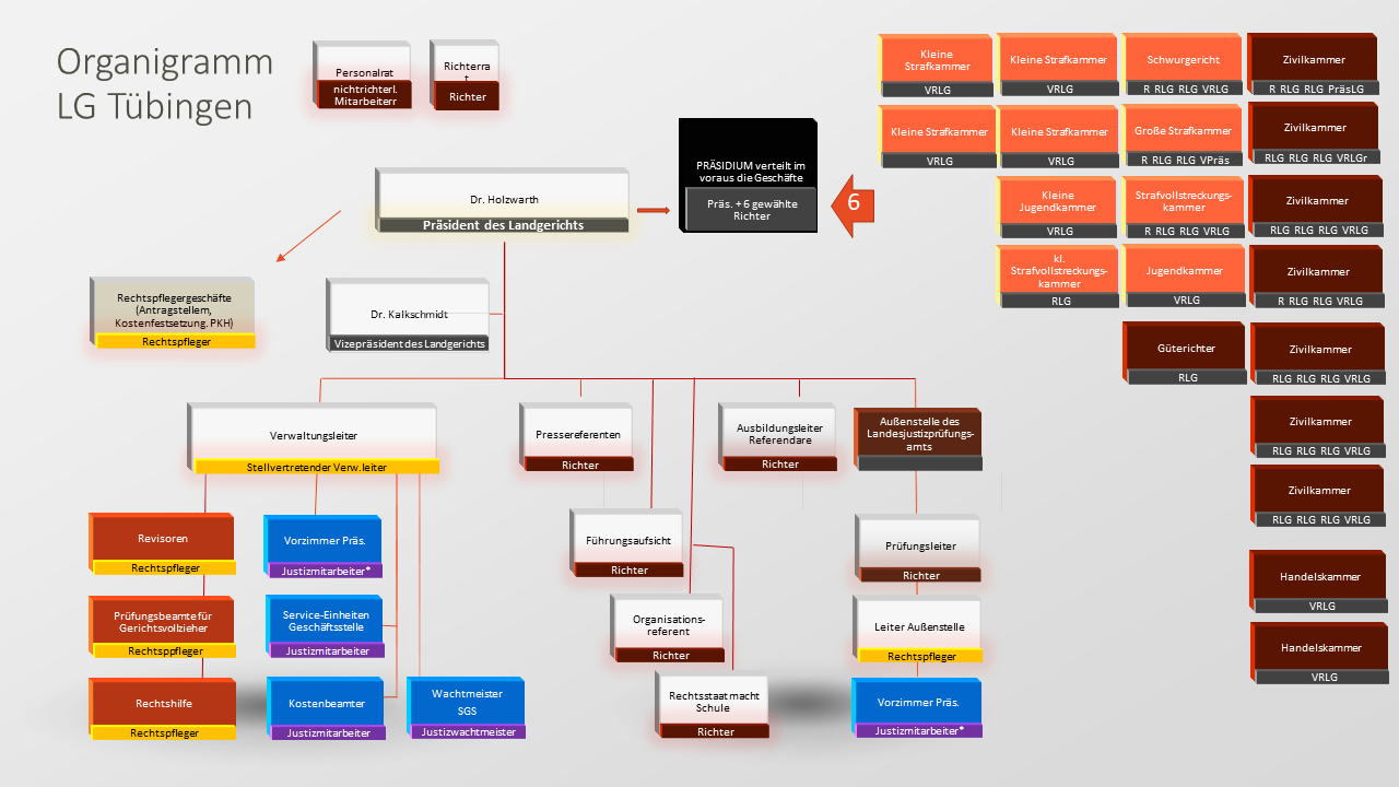 Bei diesen Verwaltungsaufgaben wird er/sie von mehreren Mitarbeiterinnen und MItarbeitern der Justizverwaltung unterstützt, teilweise auch von Richtern, die insofern als Verwaltungsbeamte tätig werden.
